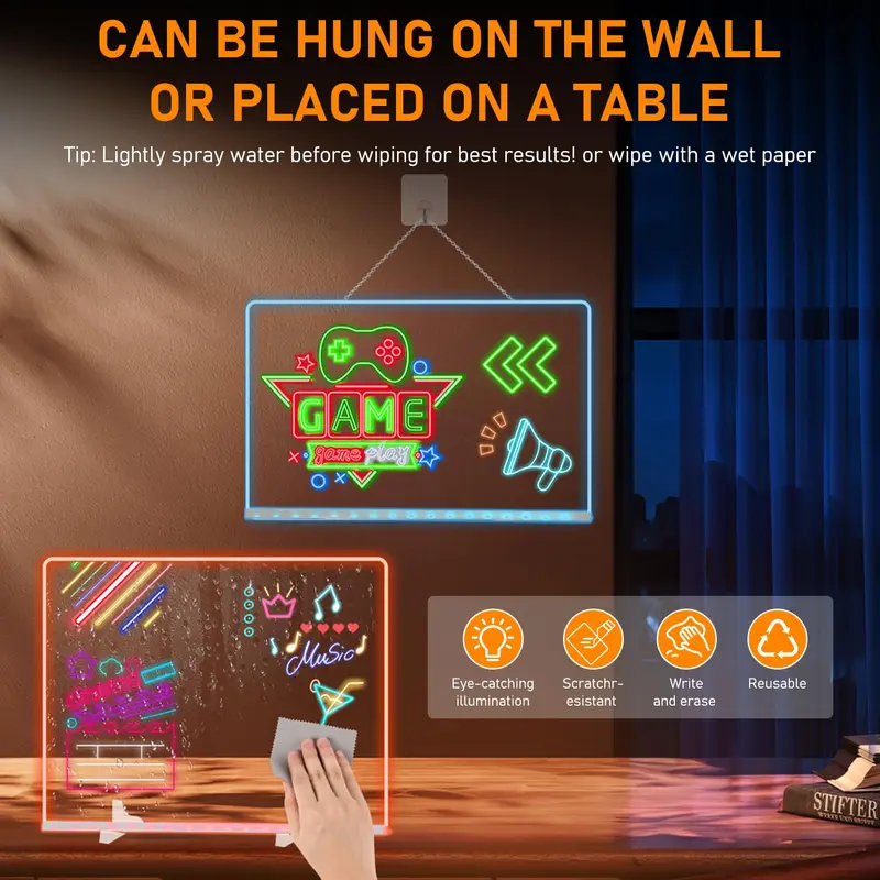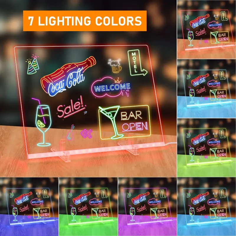 【Led Note Board with Colors】 LED Note Board with Colors is made of high-quality acrylic material, strong and durable. Acrylic Dry Erase Board is powered by USB. When connected to the power supply, it will emit a even light, ensuring that your information and design will shine in any environment.