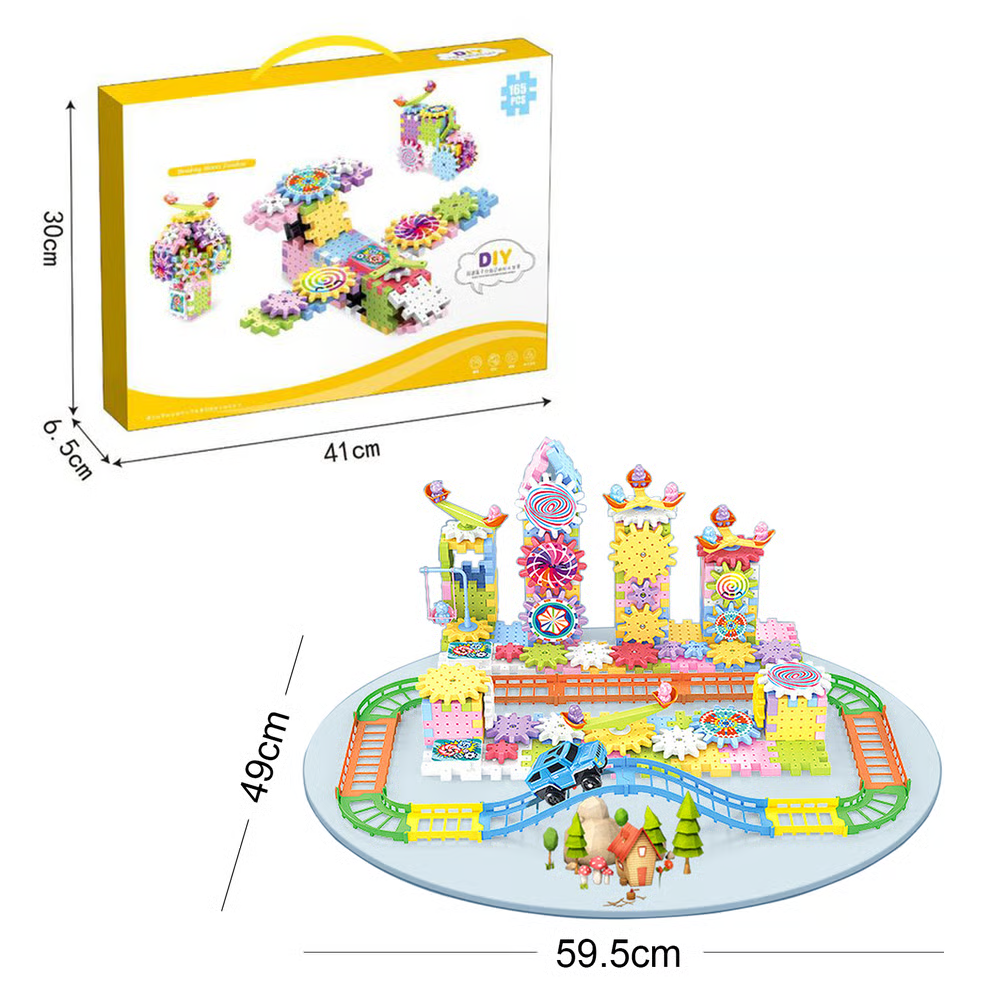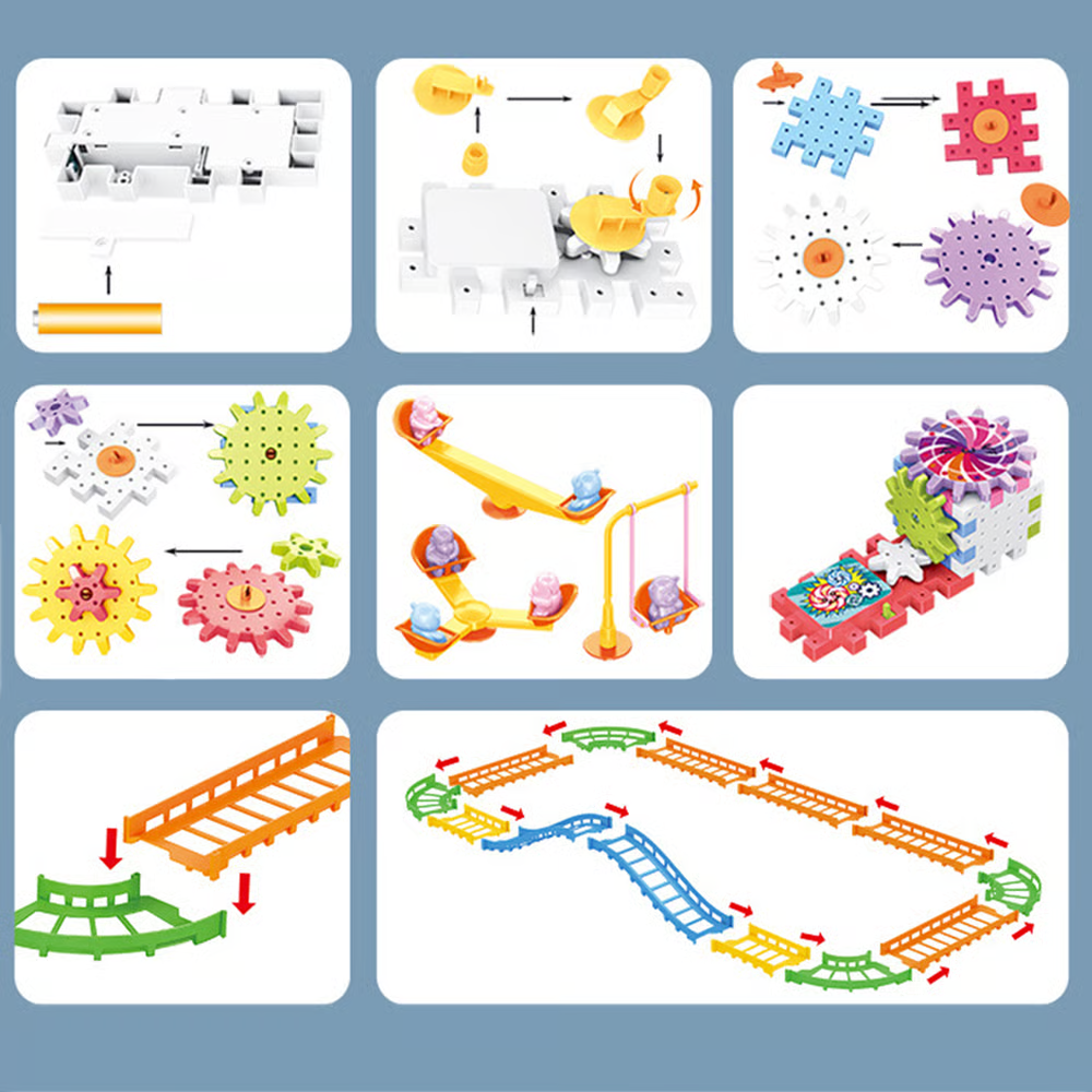 This fun shaped jigsaw puzzle type interlocking building blocks, motorized spinning gears construction set will help your children use their brain and develop important problem-solving skills, logic, and motor skills!