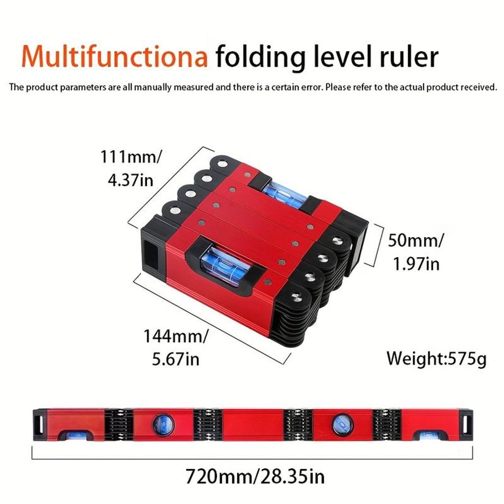 Multi-functional Folding Spirit Level 5-section Magnetic Aluminum Alloy Level for Woodworking and Multi-angle Measurement